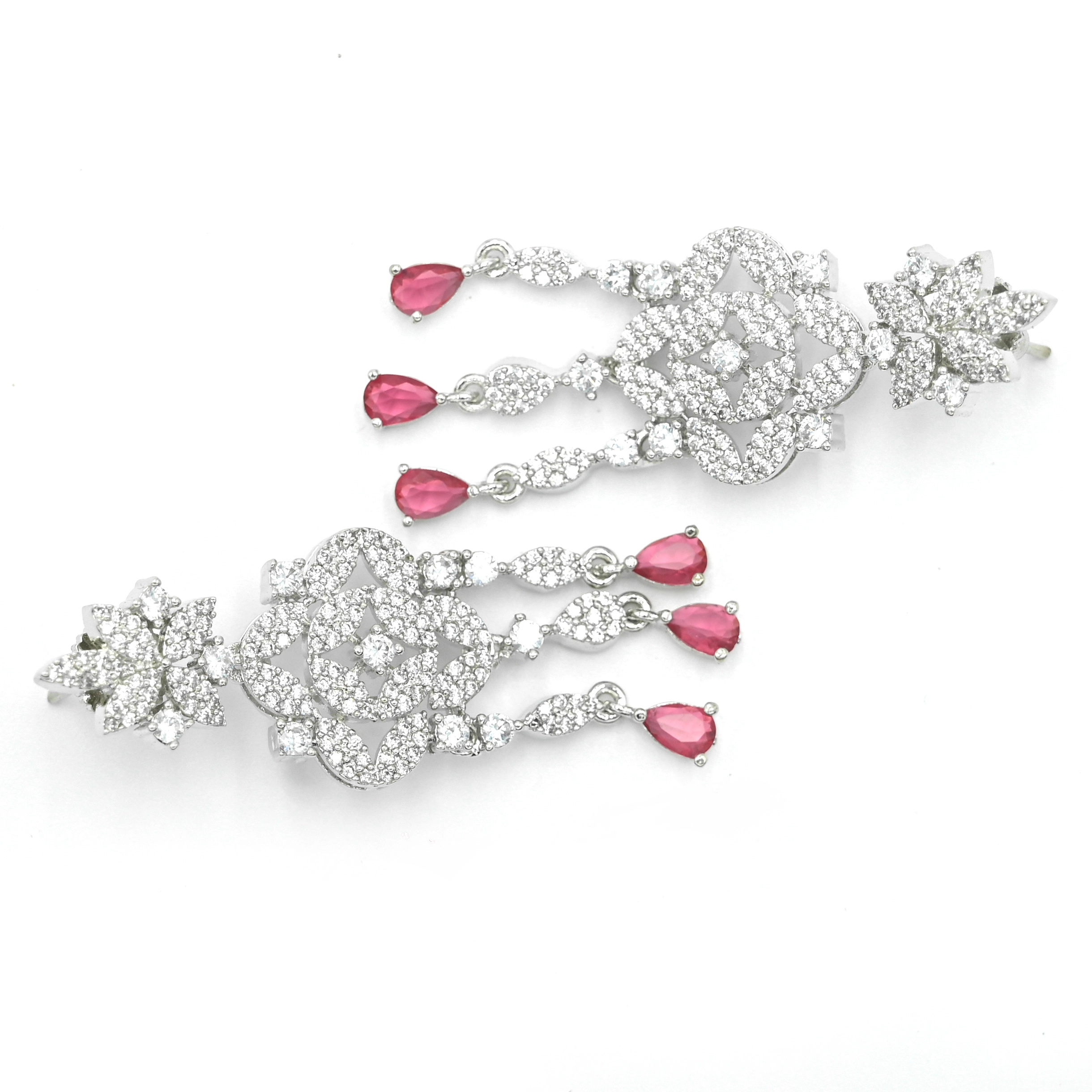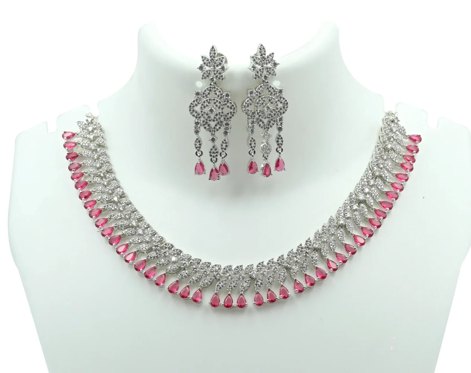 Rhodium-Plated with Silver-Toned White American Diamond Studded Jewellery Set