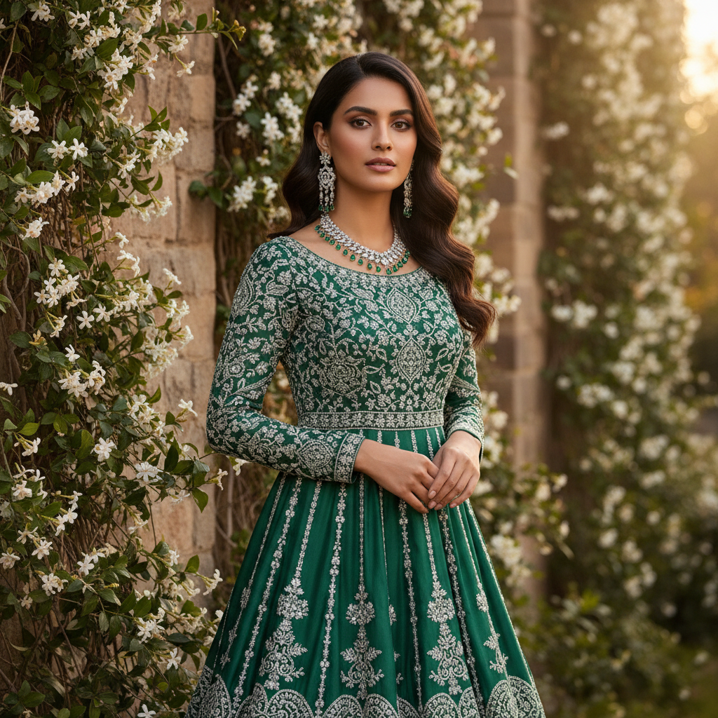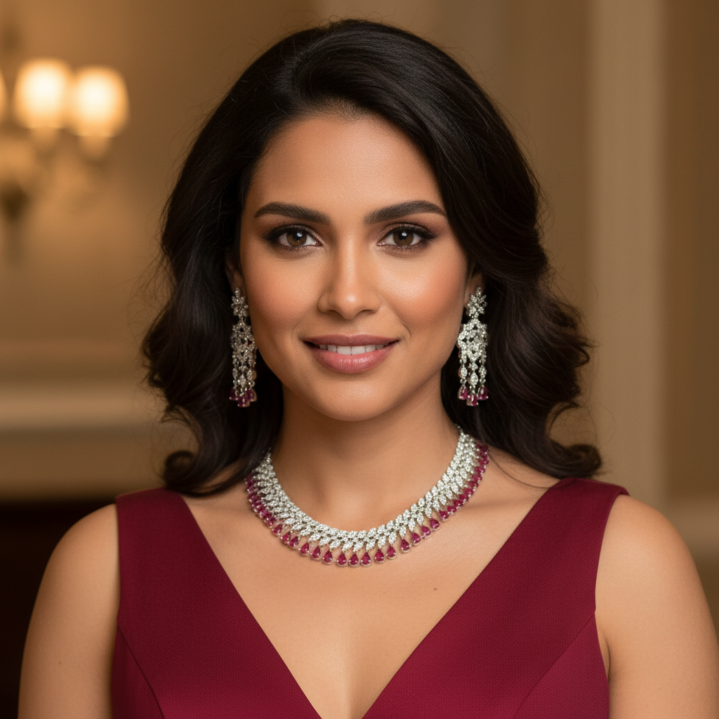 Radiate sophistication with Diadeep’s Silver & Green American Diamond Necklace Set, an exquisite piece that redefines grace and glamour.